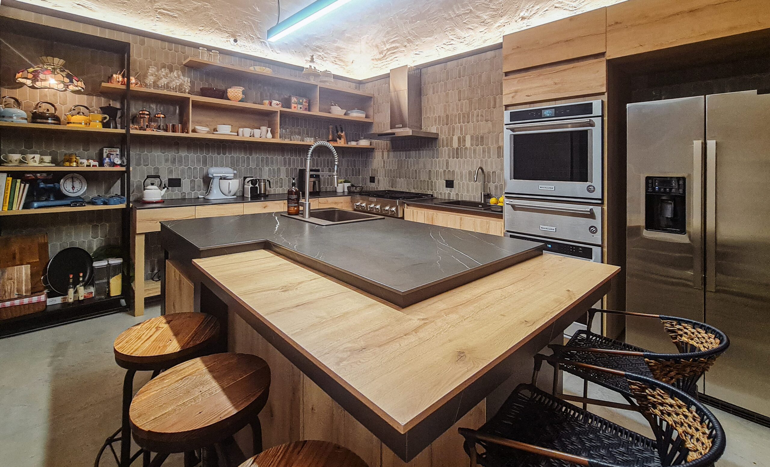 Se adoptó respetar la distribución espacial original de la casa y adaptar los nuevos espacios requeridos a las divisiones existentes. Como única adición de mayor impacto se diseñó un salón en el solar y la cocina, con un lenguaje contemporáneo: Metal, madera y vidrio.
